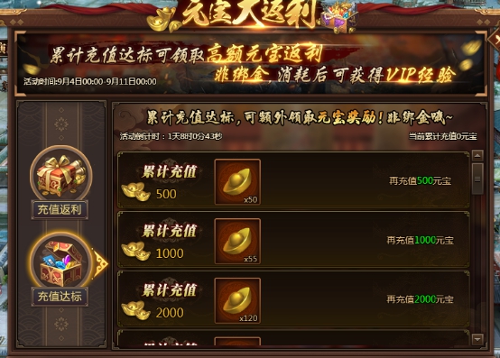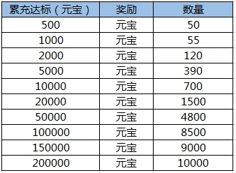 1.活动期间,每充值达到50元宝,可领取10%元宝返利,上不封顶;