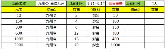 1.活动期间,每日累积充值达标可获得九州令奖励。