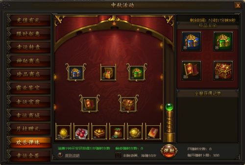 活动期间,充值一定元宝即可参与幸运大富翁,获得丢骰子次数,转动骰子即可获得踩中格子上的豪华奖励,多次参与累计步数,更有机会得到时装宝箱和极品转生装备奖励!