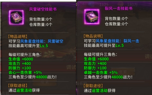 风雷破空技能书为星盘技能书,为每个角色提供攻击力+400,防御力+100,生命值+6000,会心一击伤害+5%,3个角色至少增加48000战力!