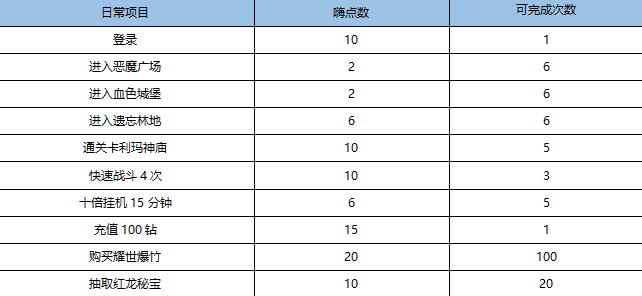 (1)新增耀世嗨翻天活动,只要在庆典当天完成日常项目,即可获得嗨点,当获得嗨点达到对应档位配置数量时即可领取嗨点奖励。