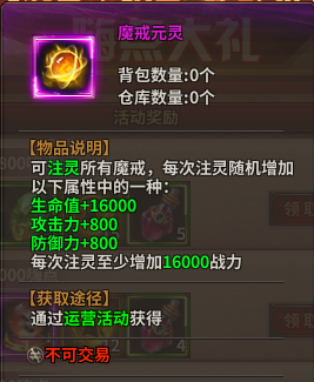 (3)魔戒元灵:可在新增的魔戒系统中对所有魔戒进行注灵,每次注灵至少增加16000战力!