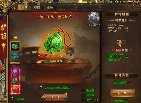冥冥之中,自有天定。新增护符系统,玩家可在“角色”-装备页面中查看。可通过“祈福”抽取超爽buff