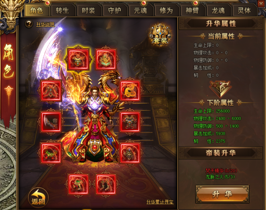 2.消耗梵天精华和龙脉之火,可对所有帝装部位进行升华,