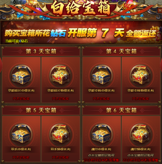 开服第三天开启白给宝箱,连续四天售卖珍惜材料;