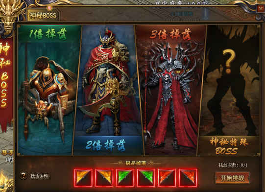 可通过活动图标进入神秘boss界面,每天可挑战一次,次日0点重置;
