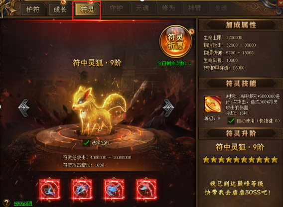 护符50阶后将开启符灵系统,获得全新随从--符灵宝宝;