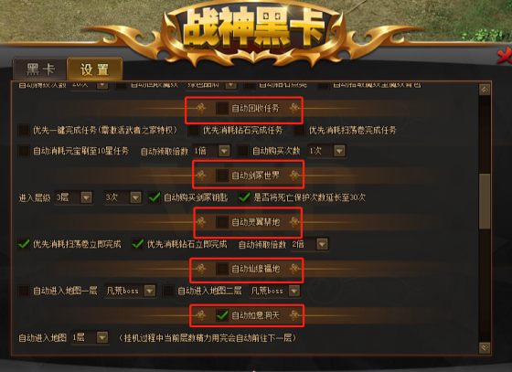 8.修复了黑卡未保存幻境地图挂机选项勾选状态问题;