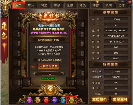圣光装备可为玩家额外提供圣光伤害、圣光抵抗、圣光铠甲等3种属性: