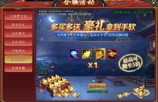活动期间合服商店每日刷新超低价商品,玩家可以购买限定次数的商品。