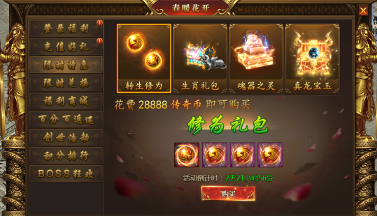 活动内容:活动期间消耗传奇币即可购买特惠礼包