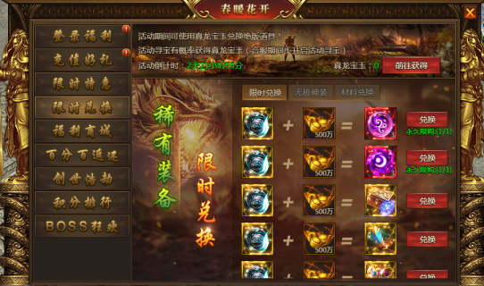 活动内容:活动期间可使用真龙宝玉兑换绝版道具