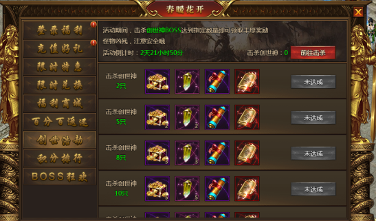 1.活动期间击杀指定数量的创世神即可获得奖励