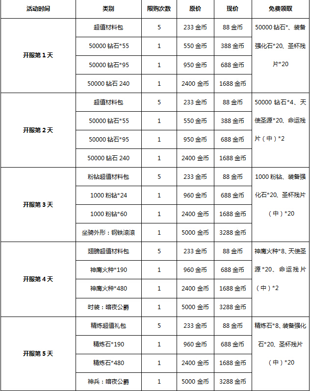【活动时间】开服1-7天