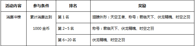 【活动内容】活动期间消费额度达1000金币以上可计入排行,交易排行不计入排行消费额度,活动结束后奖励通过邮件发放